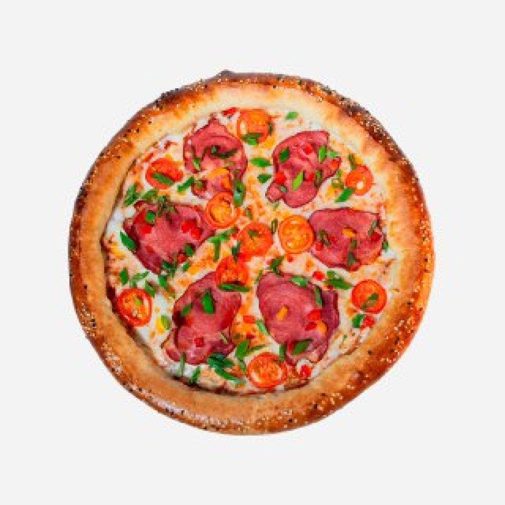 Сыр "Моцарелла", сырный бортик, копченая говядина, черри, болгарский перец, кунжут, зеленый лук